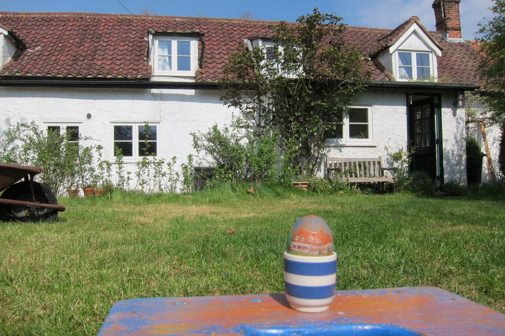 This year has been different. We are all in our own homes. We have decorated our eggs but since they are now rather scarce, they will all be eaten. For the first time, my husband blew our eggs and scrambled the contents, so we decorated empty shells and I felt I was decorating something even more fragile than usual. I used paint to evoke the colours I have been enjoying in my garden this month and experimented by sticking forget-me-not flowers to the shell with egg-white. This morning, we all displayed our eggs on our first ever family Zoom call. Next year, by the sea again.