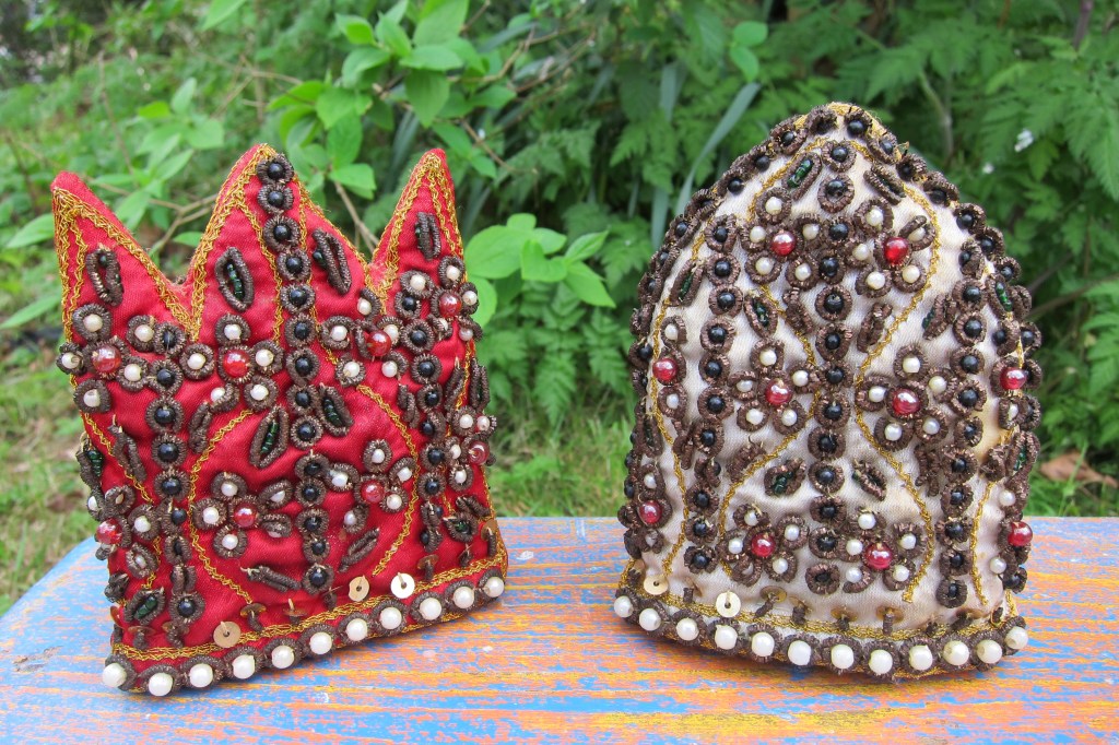The jewelled egg-cosies came from the 2003 Gothic exhibition at the V&A. They seemed an extravagant purchase at the time but have been in regular use ever since. My son and my husband often round off breakfast with a puppet-show exchange between The King and The Bishop.